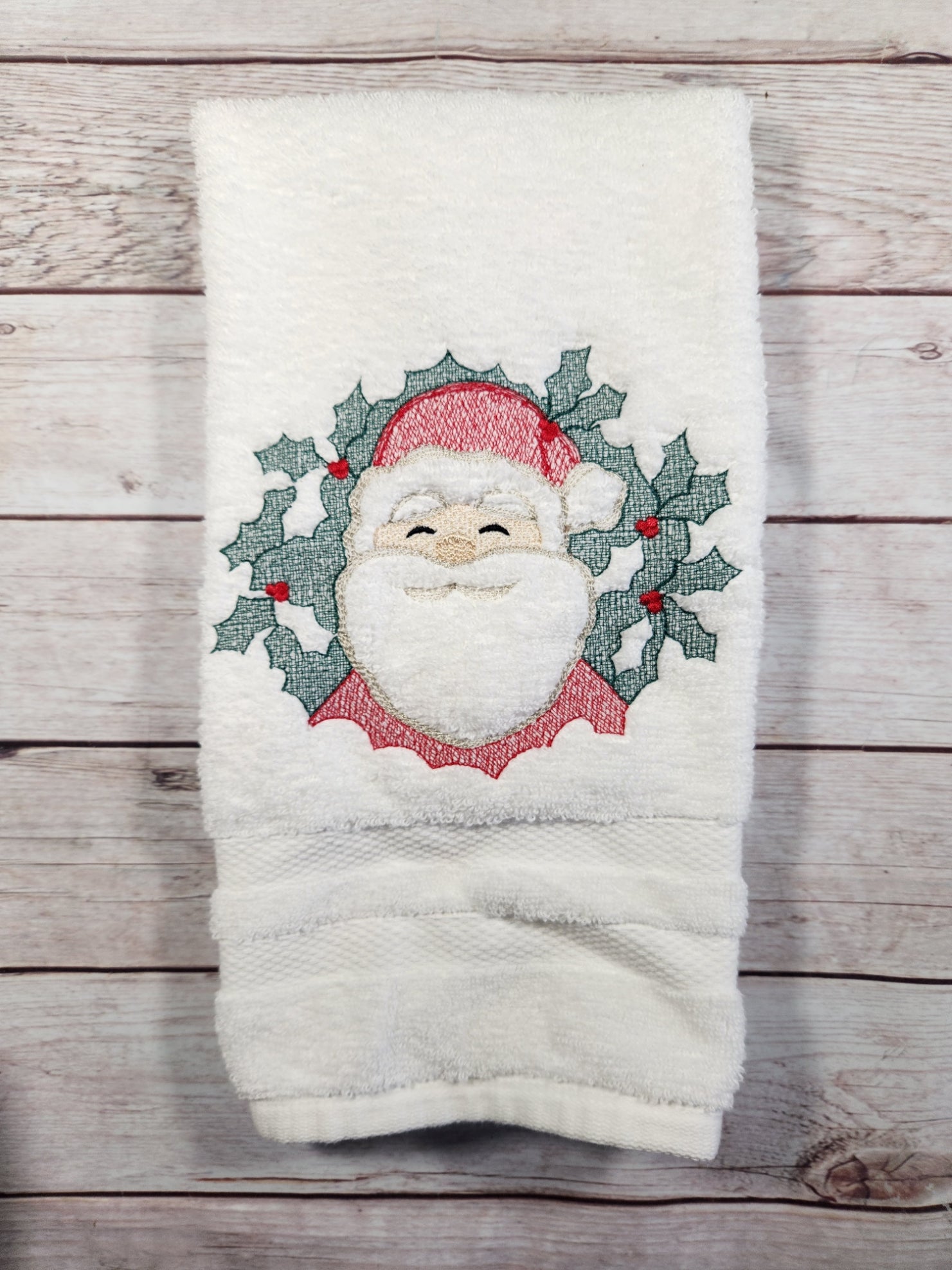 Embroidered Embossed Style Santa Hand Towel Christmas Decor