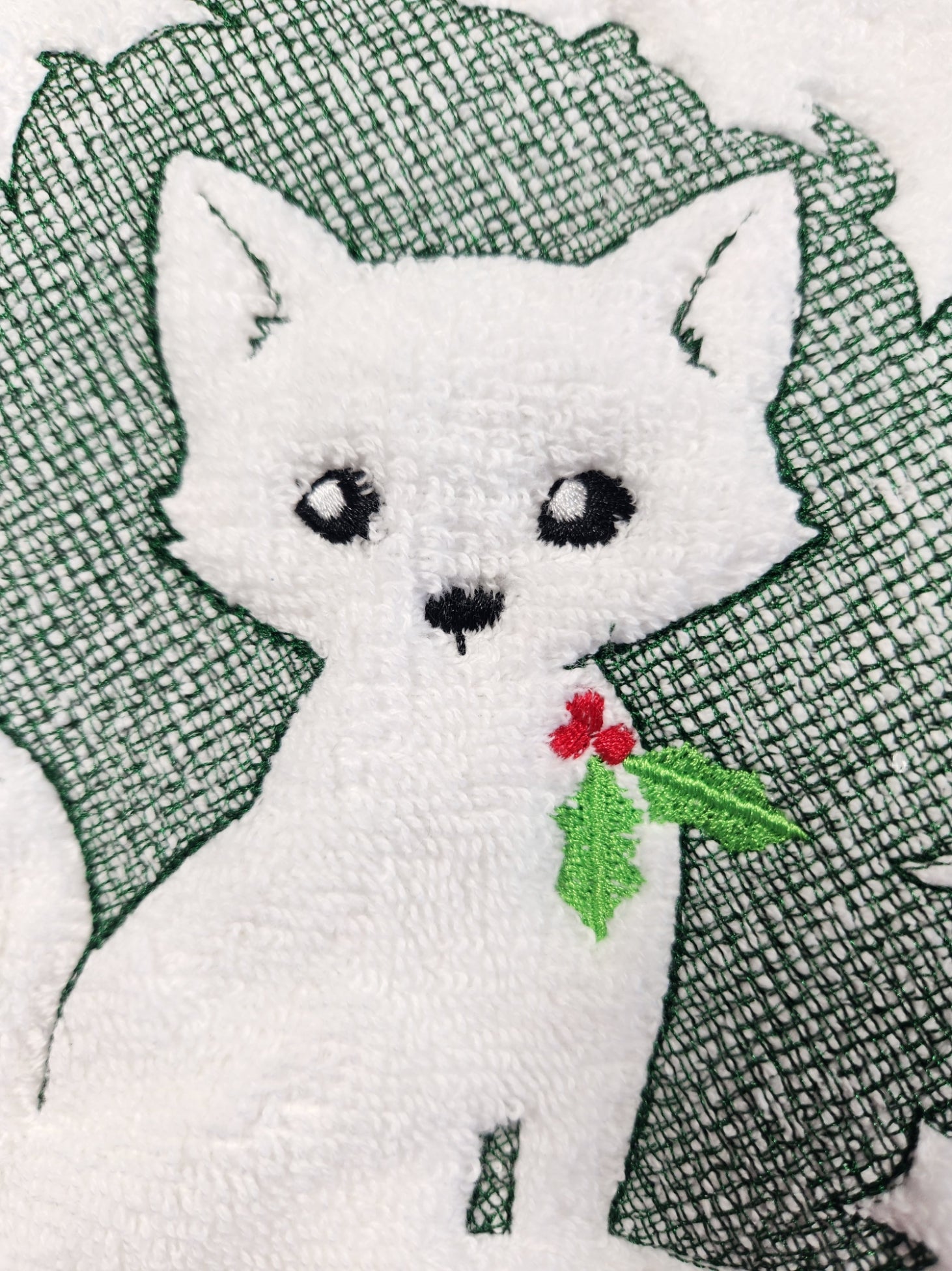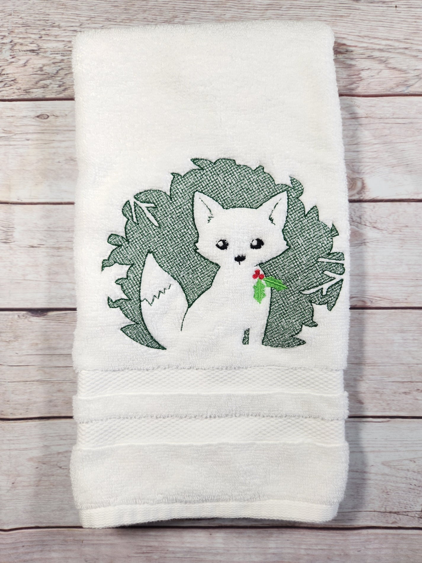 Embroidered Embossed Style Fox Hand Towel Christmas Decor