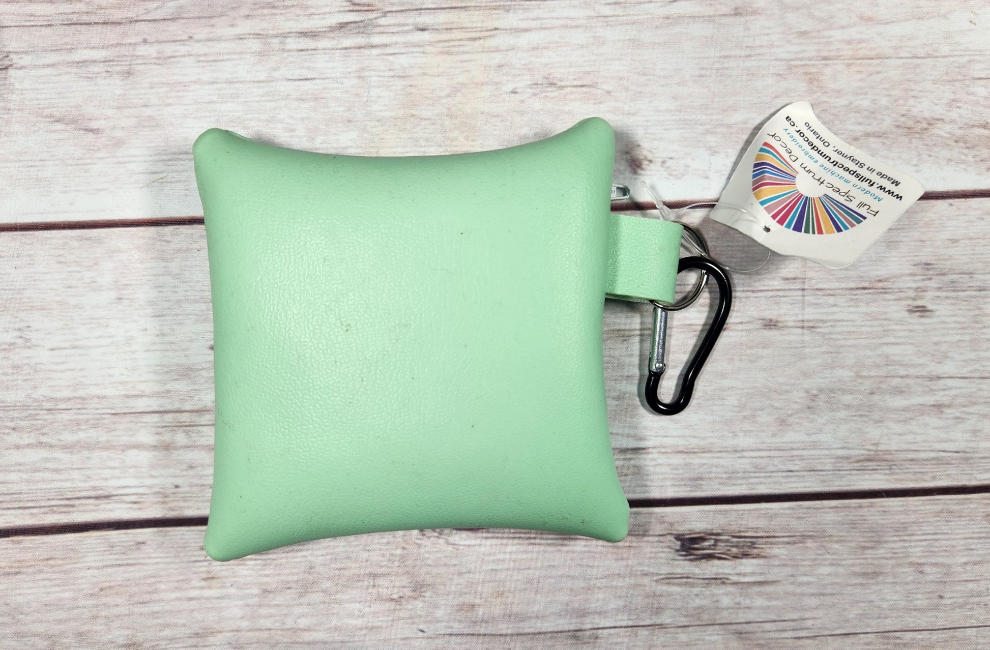 Has ring and clip on side so you can clip on belt loop, dog leash, purse etc.